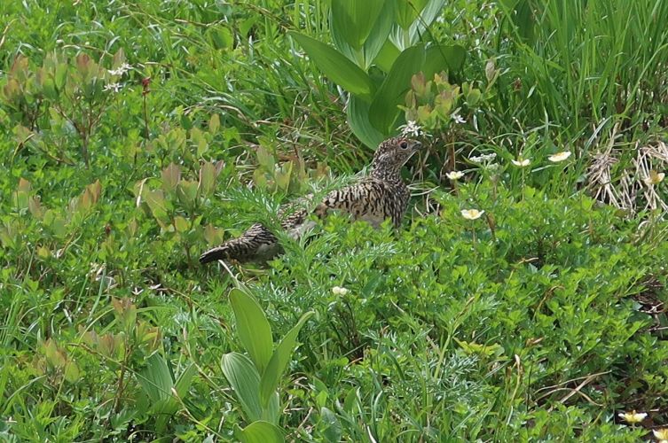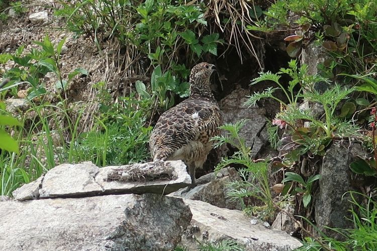 嫁に先行して歩いていると、目の前をライチョウが横切った。