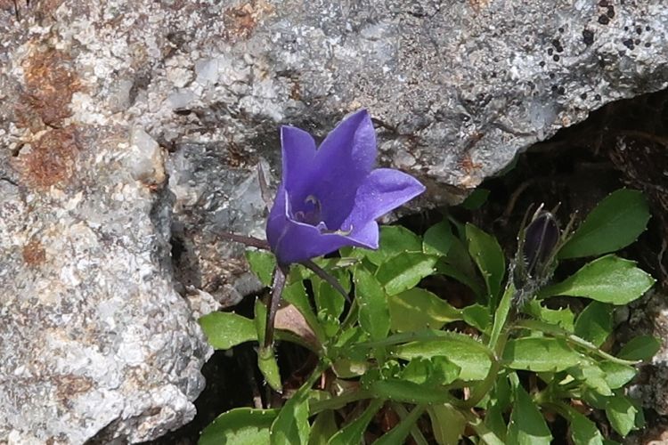 キキョウ科のイワギキョウ。チシマギキョウに似るが、本種は花冠の裂片に毛がない。