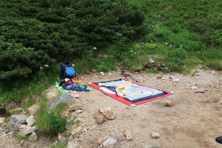 30分足らずで幕営終了。幕営地が下の方になると山荘への上り返しが大変なのでラッキーだった。