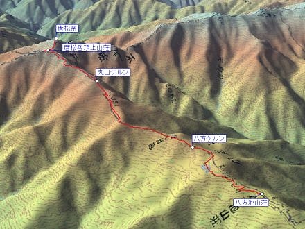 八方池山荘 7:45 ⇒ 八方ケルン 8:45 ⇒ 第3ケルン 9:05 ⇒ 10:55 丸山ケルン 11:00 ⇒ 12:20 唐松岳頂上山荘テント場 12:55 ⇒ 13:25 唐松岳 15:05 ⇒ 唐松岳頂上山荘テント場 15:30