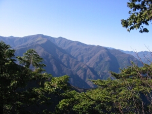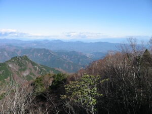 西に見える和名倉山。展望は木々で限られているが、なかなかの眺望だった。