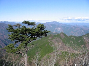 北方面には、霧藻ヶ峰から白岩山、雲取山と続く稜線が大きく見えた。