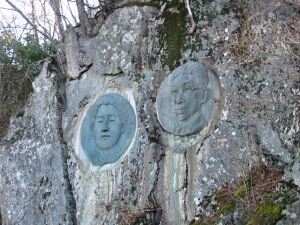 霧藻ヶ峰休憩舎のすぐ手前にある秩父宮両殿下のレリーフ。