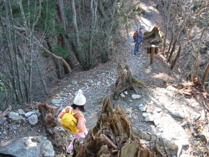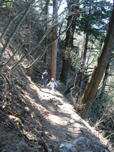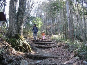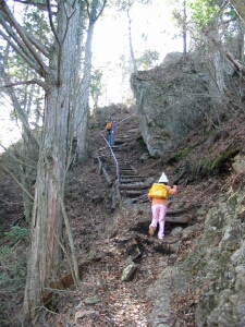 くさり場や急な石段は降りるのが大変なので、ついごちゃごちゃ言いたくなるのだが、娘は十分慎重だ。