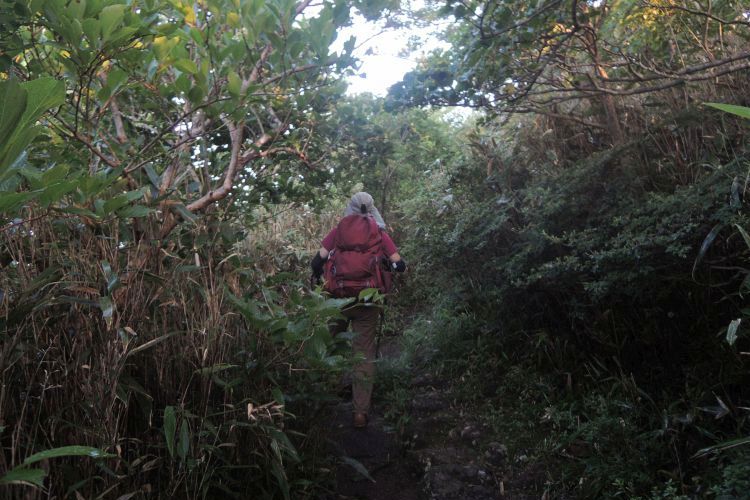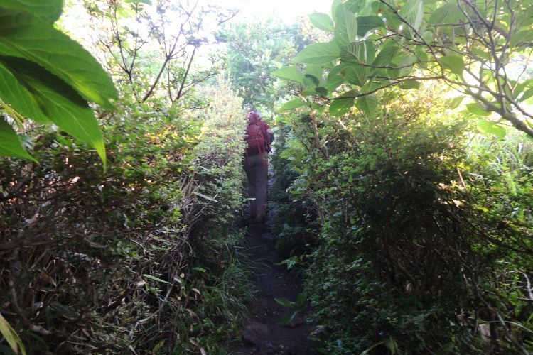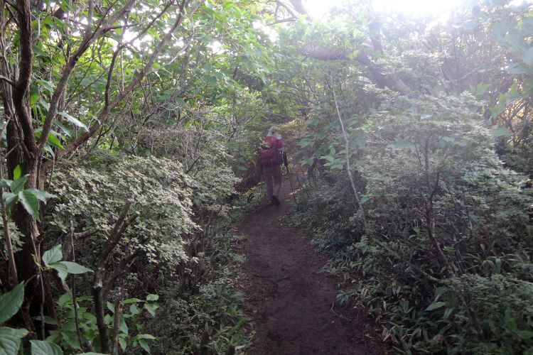 火口縁の潅木帯を進むが、思ったよりも樹木の背が高くて見通しがきかなかった。