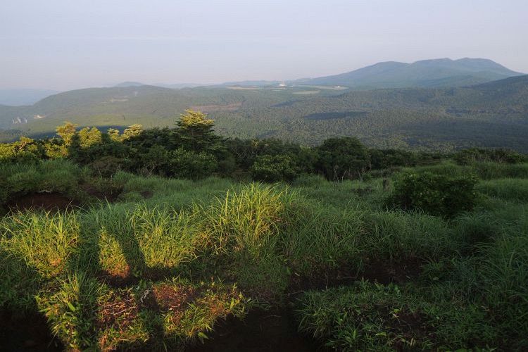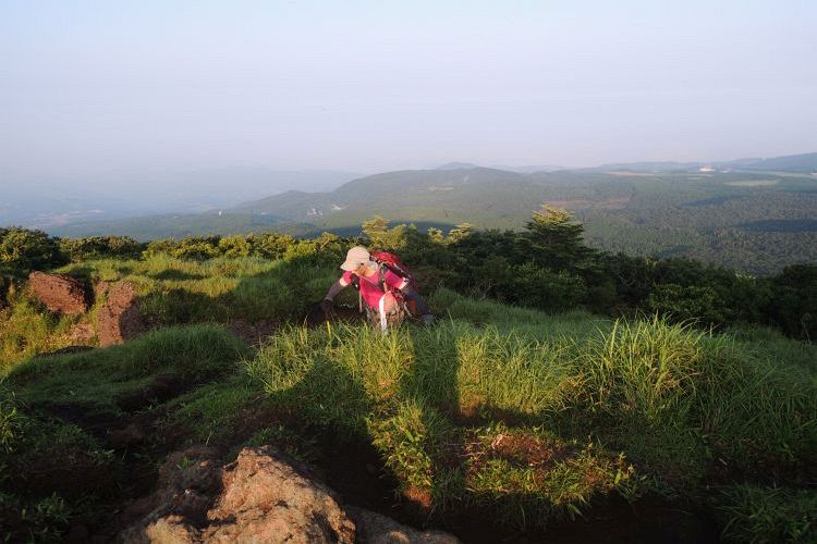 4:00 起床。未明に車の出入りが気になったが、夜は涼しくて比較的よく寝ることができた。明るくなると同時に登山を開始。上りは大浪池の西回りコースを、下りは東回りコースを歩いた。予報がコロコロ変わって天気が心配だったが、午前中は概ね晴れて、山頂からの眺めを楽しむことができた。登山規制で韓国岳のお鉢巡りはできなかったが、火口縁の南から東側へ断崖絶壁を歩くことができた。行きと帰りで1周した大浪池の火口縁歩きも、展望の利くスポットがたくさんあって思いのほか楽しめた。