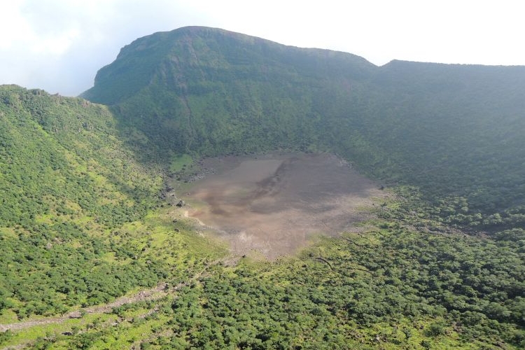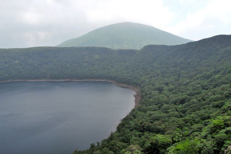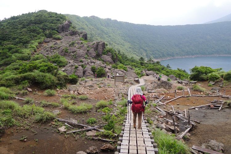 韓国岳の火口は直径800mで、大浪池に次ぐ大きさ。