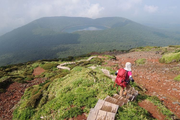 お鉢の北西側が硫黄山の登山規制に含まれているため、ぐるっと1周することはできない。
