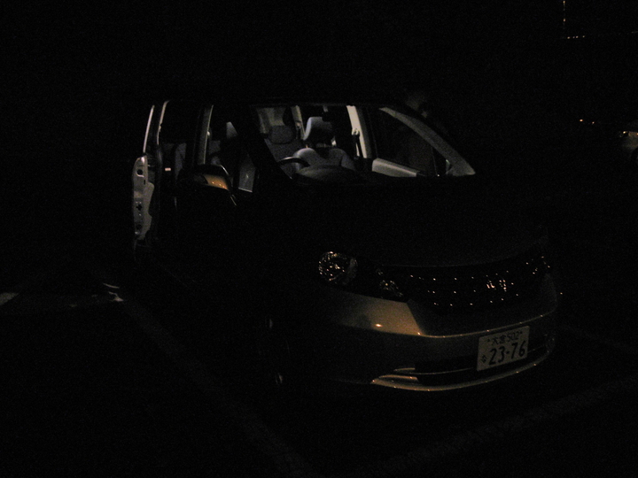 駐車場には4~5台の車が停まっていた。気持ち悪いという嫁を促し、暗闇の中をとにかく出発。