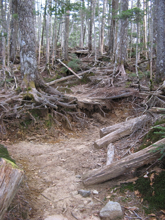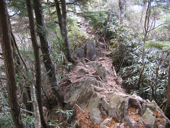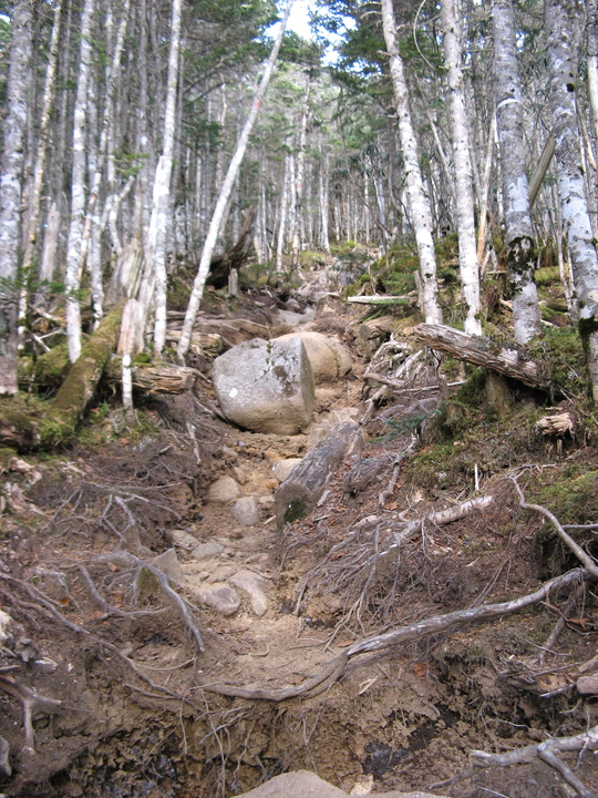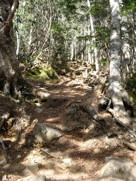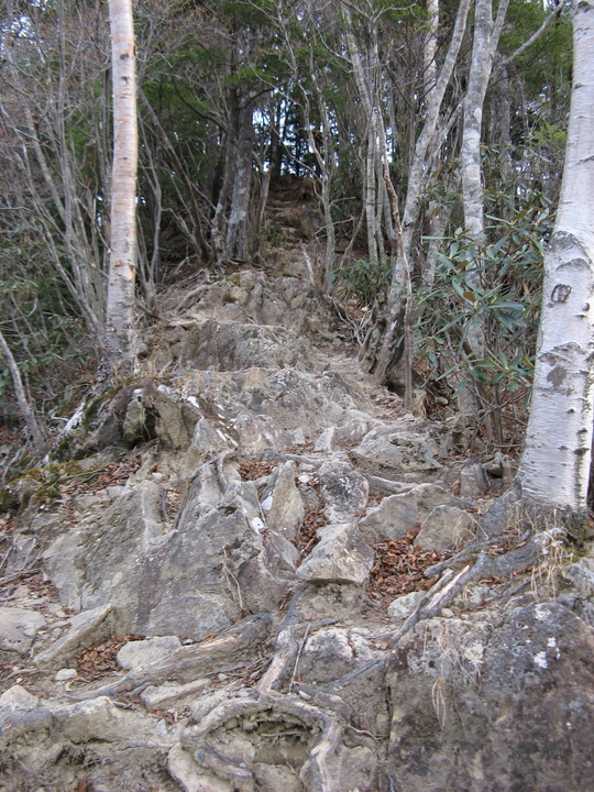 露岩を過ぎると、えぐれていたり大きな岩石がころがったりした歩きづらい急坂がしばらく続いた。