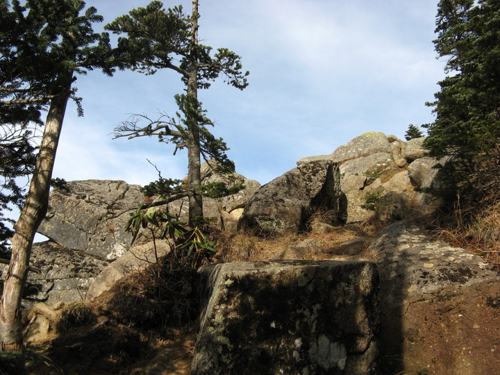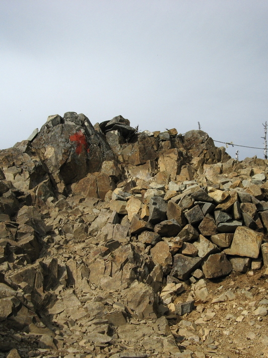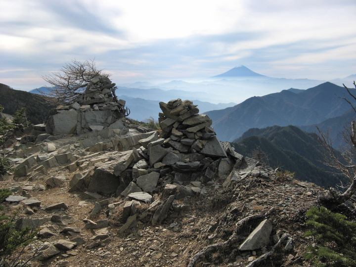 眺めのよい露岩に出ると、いくつかケルンが積み上げてあり、山頂はすぐ先だった。