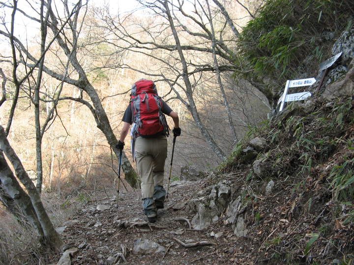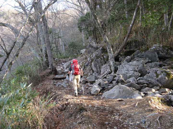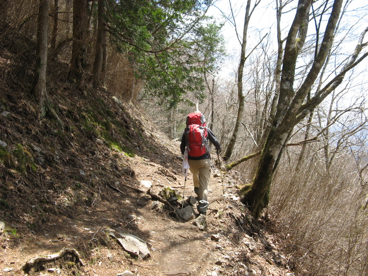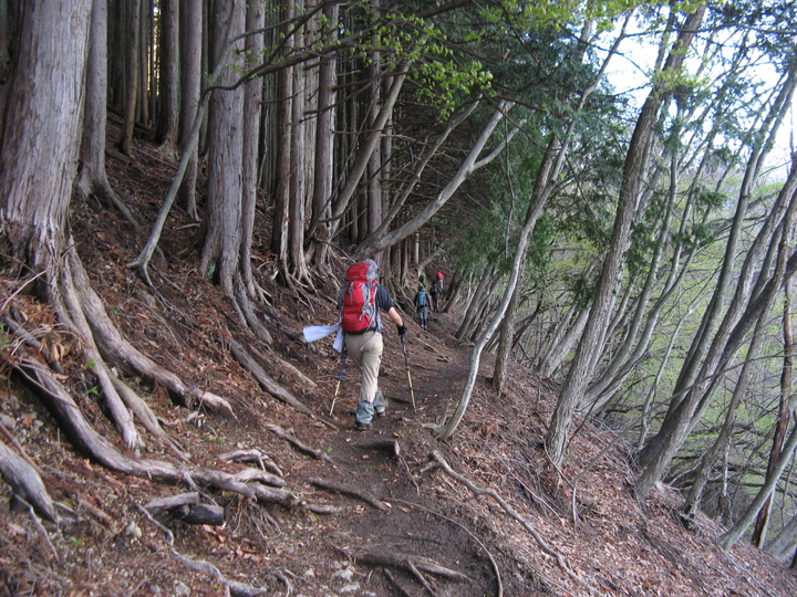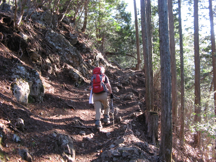 足に疲労を感じてきたので、堂所の手前で少し休んだ。足の速いハイカーはどんどん先に下りて行く。