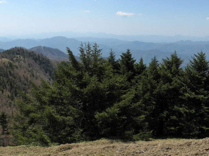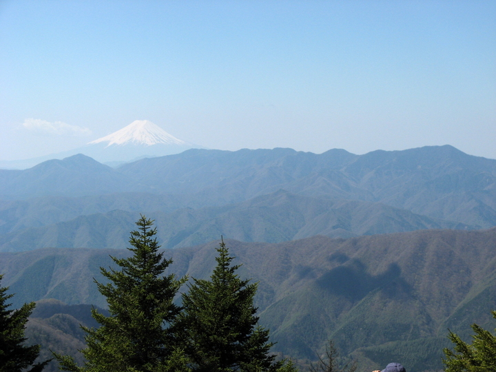 埼玉・東京側の山頂からは西側の眺めがよい。樹間に見えた大洞山(飛龍山)。
