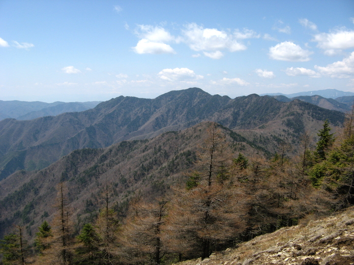 北奥千丈岳と国師ヶ岳、甲武信ヶ岳、三宝山と続く山並。