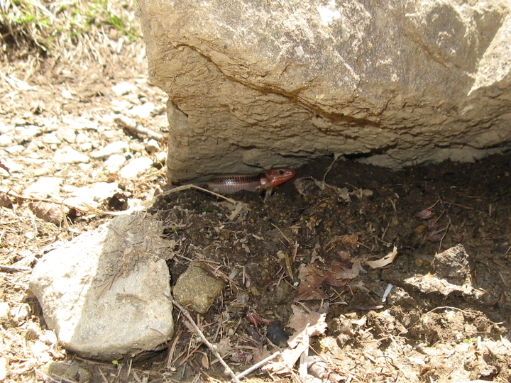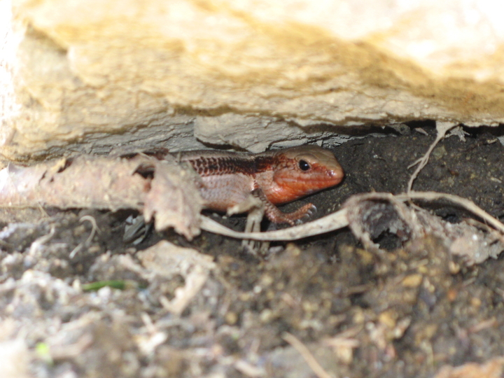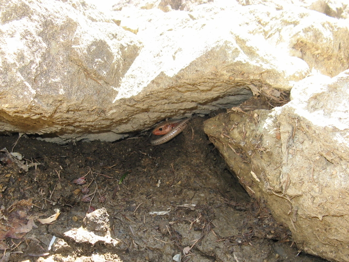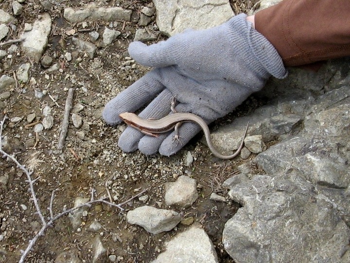 岩の下をのぞくとニホントカゲと目が合った。奥行がなくて隠れる場所はないようだった。
