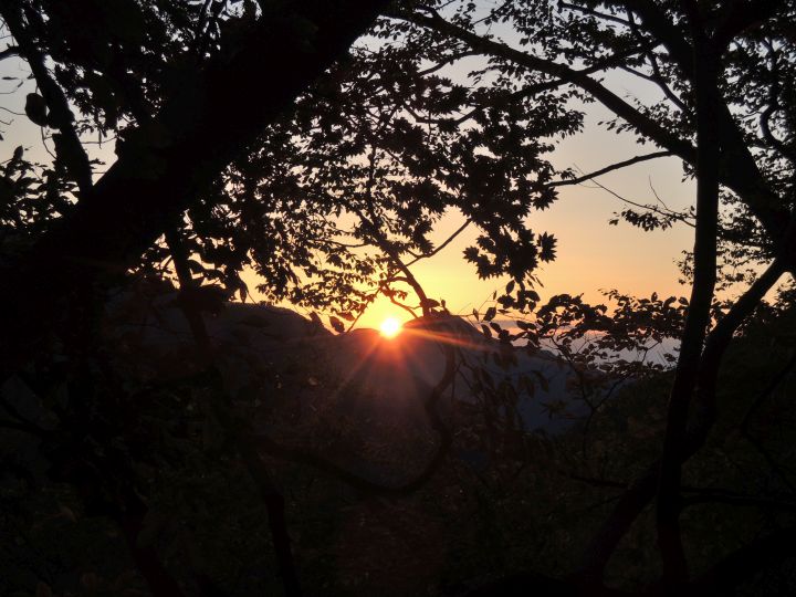 6:05 樹林の向こうに日の出が見えた。