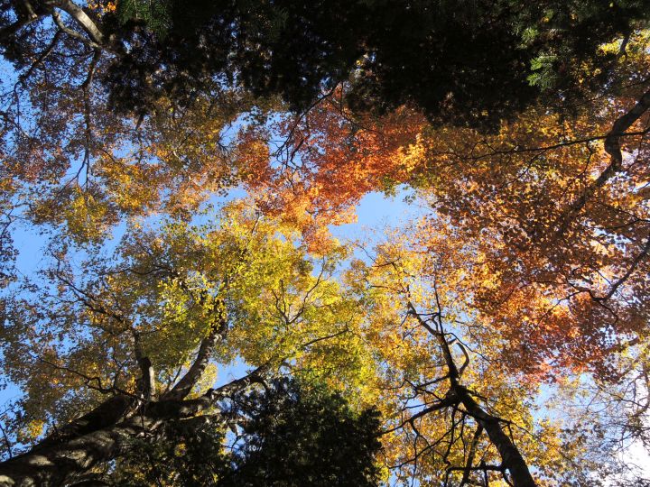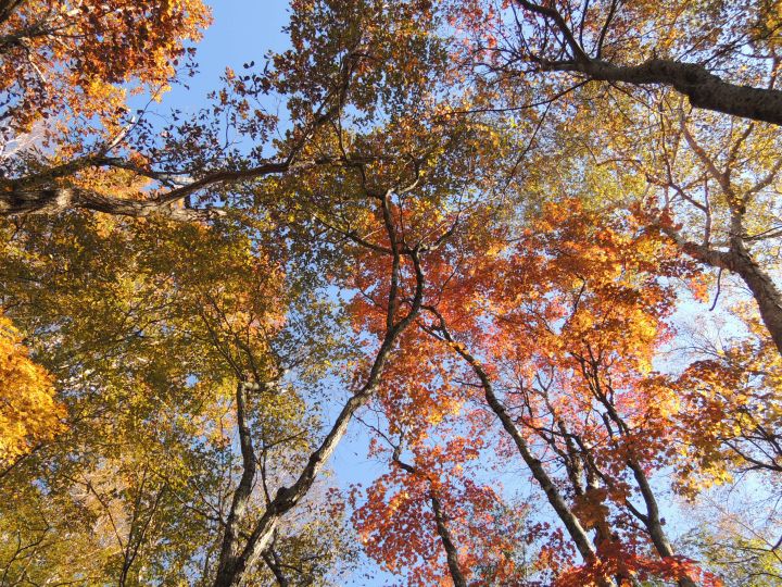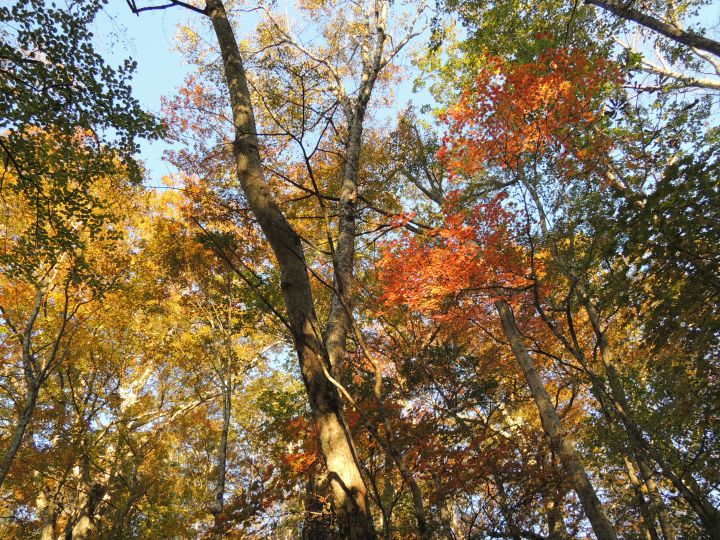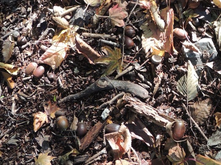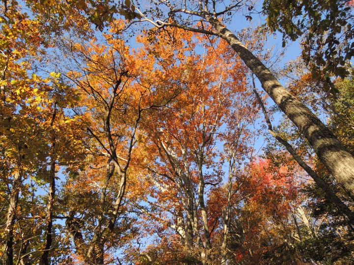 足元にはドングリがたくさん落ちていた。熊が出てきそうな気がして、熊よけの鈴を鳴らしながら歩いた。