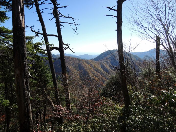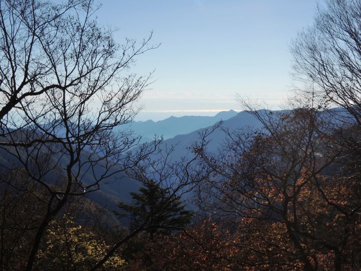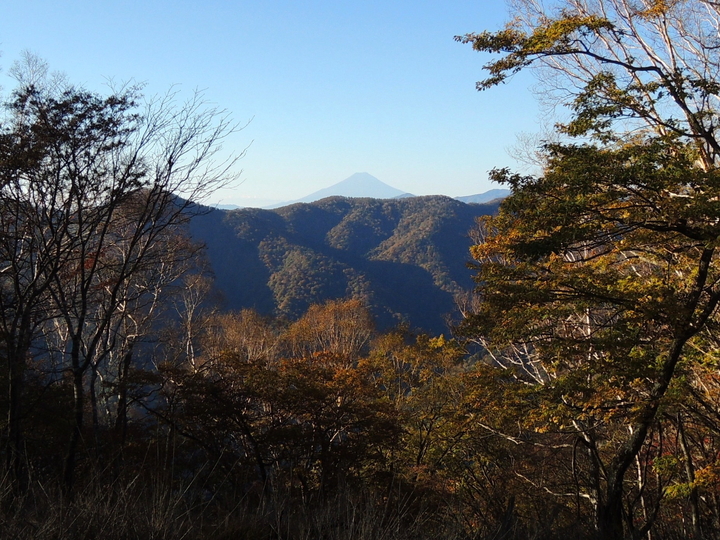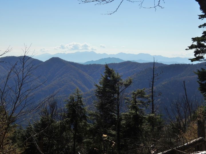南側の樹間に丹沢山系が見えた。手前には三頭山の山頂部がちょっと見える。