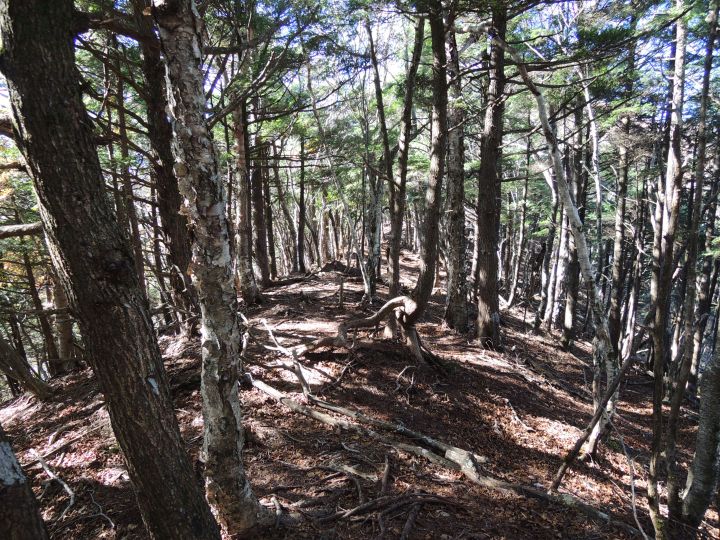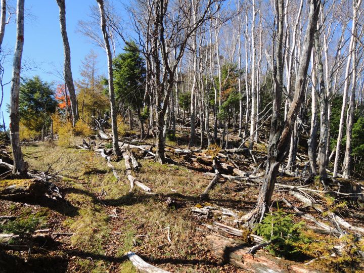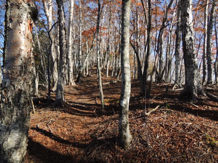途中、ダケカンバの倒木が目につく尾根を通過。