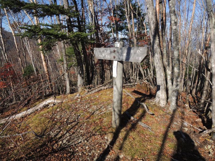 12:25 小雲取山の分岐に到着。ここから富田新道で野陣尾根を下る。