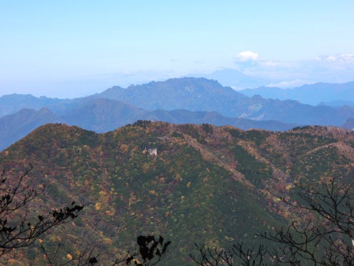 女坂の途中で男坂の稜線に上がり、雲取ヒュッテ跡付近から白岩山と芋ノ木ドッケを撮影。