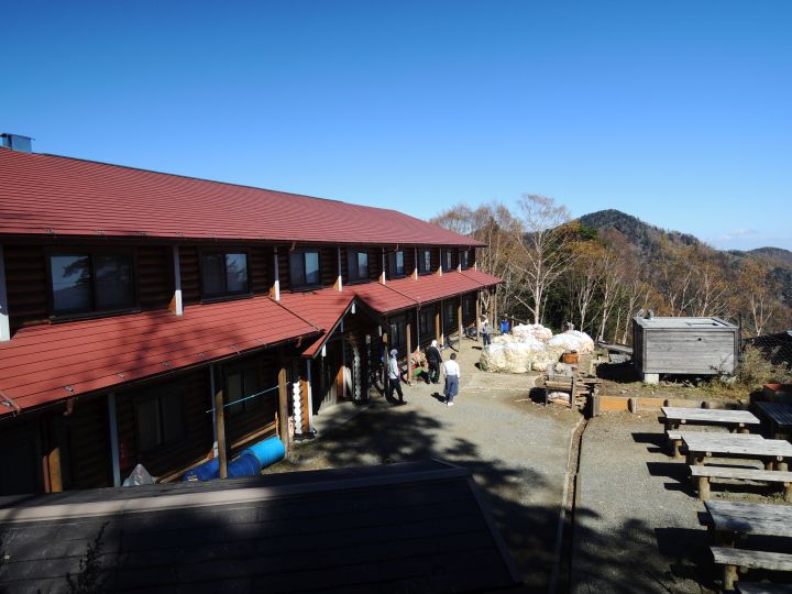 11:20 雲取山荘に到着。ヘリによる荷揚げの真っ最中で、山荘のスタッフに上へあがるように言われた。