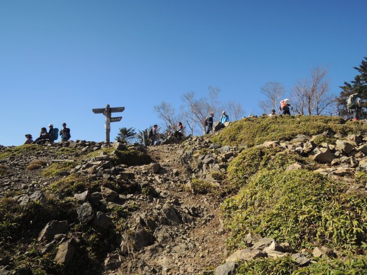埼玉・東京側の山頂には、10人前後のハイカーが眺めを楽しんでいた。