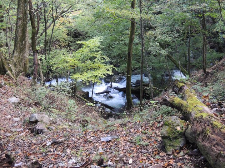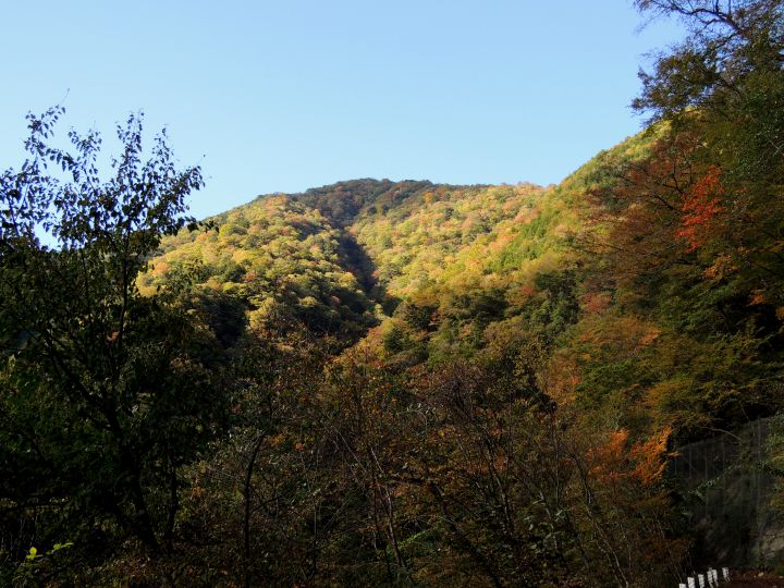 2時過ぎに起床、2時45分出発。八丁橋には5時に到着したが、手前1.5kmは凸凹の砂利道で、回避不能の水たまりも多数あって神経を使った。今回は嫁が風邪気味のために単独行となったので、限界に挑戦するつもりで飛ばした。台風通過による大雨の影響と堆積した落ち葉のために、踏み跡がひじょうに見分けづらく、何度も道をロストした。足が何度も攣りそうになるなど、体力的にはまさに限界近い山行となったが、最後までしっかり歩くことができた。標高1,500m前後は紅葉真っ盛りで、カエデ類やカラマツなどが見事に色づいていた。天気もよく、雲取山からの眺めも気持ちをリフレッシュしてくれた。コースタイムの長さから日没までに下山できればと考えていたが、予想以上に早く下山できた。