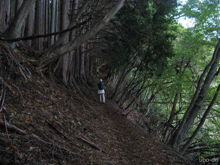 植林と雑木林の緩やかな坂を歩き続け、1時間半で堂所に到着。前夜の雨で場所によってはぬかるんでいた。