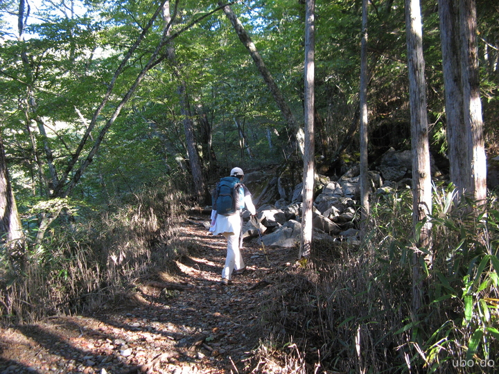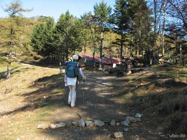 木橋を渡り、右手に七ツ石小屋へ続く道を分けて進む。
