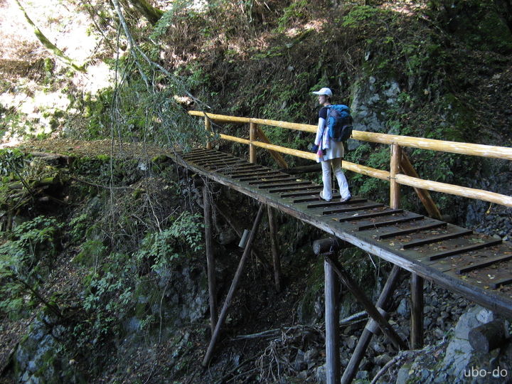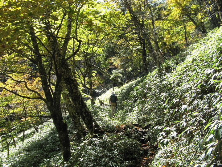 場所によっては狭い道の谷側が笹で隠れていたので注意して歩いた。