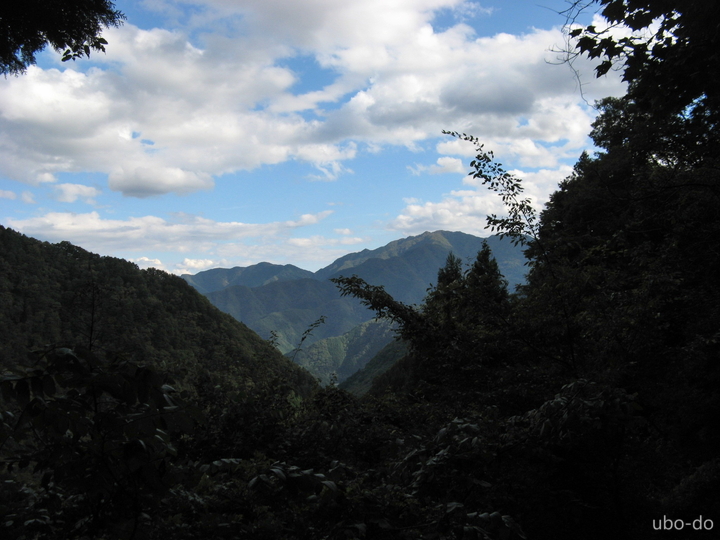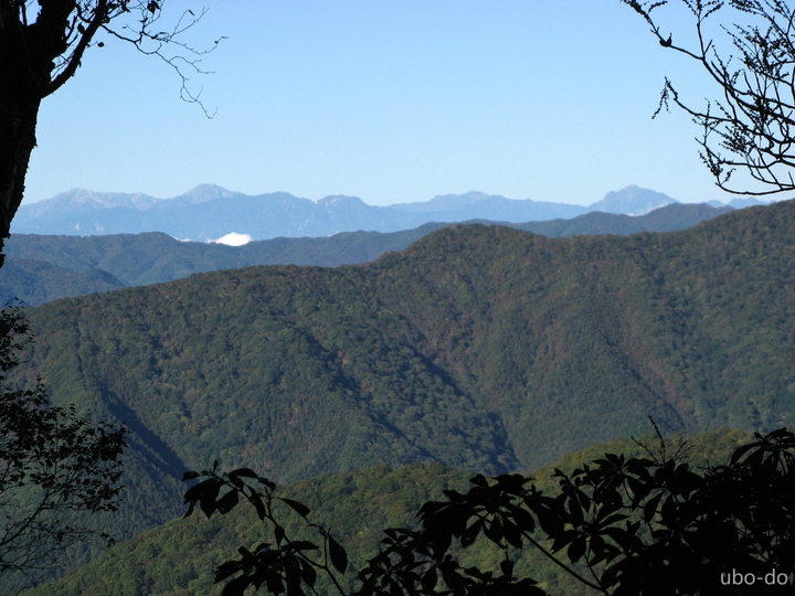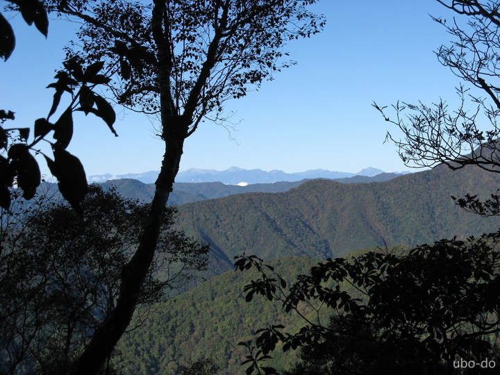 迂回路の樹間に見えた両神山。