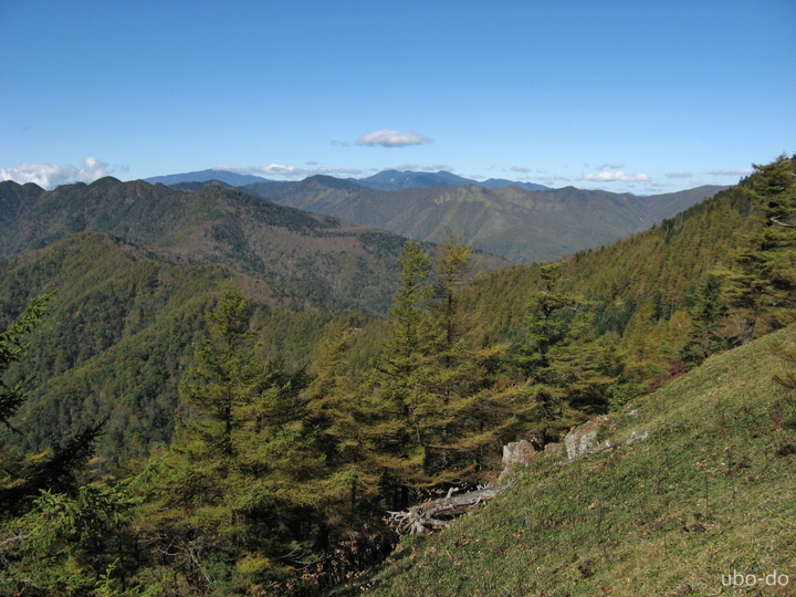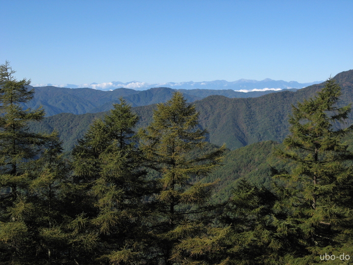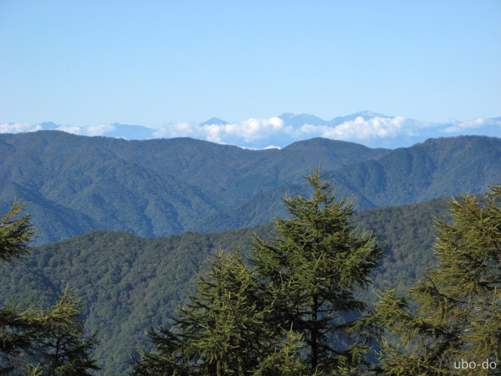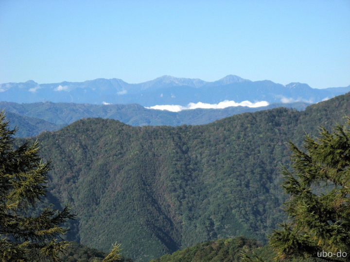 左から北奥千丈岳、国師ヶ岳、唐松尾山、甲武信ヶ岳、三宝山。西側の山並を一瞬八ヶ岳かと思ったが間違いだった。