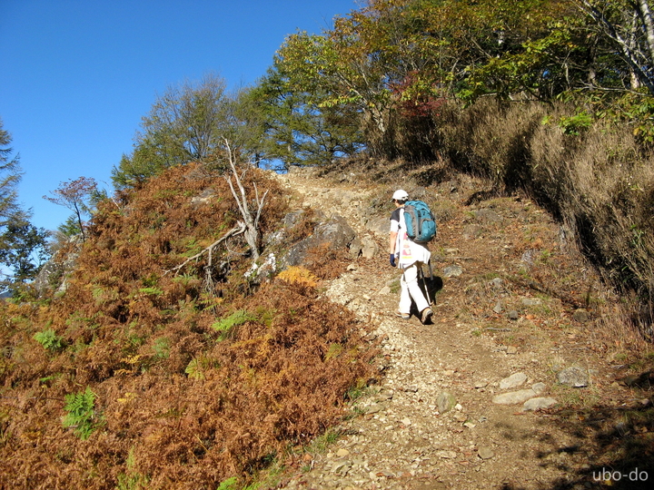 奥多摩小屋を過ぎて、やや急勾配の坂をヨモギの頭まで上る。