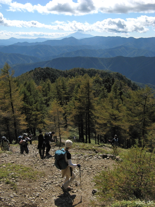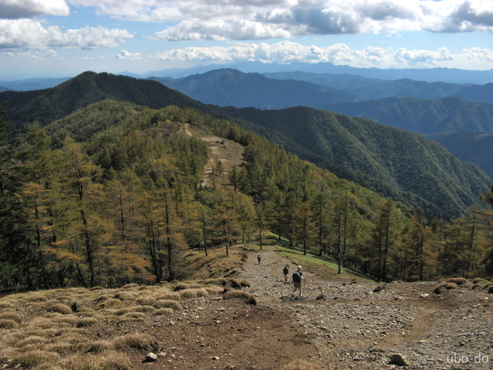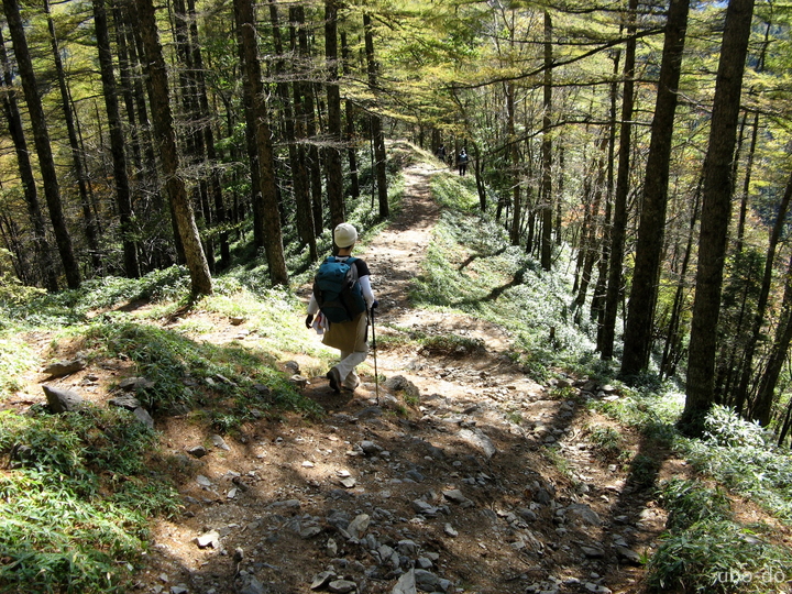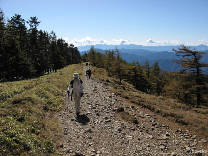 ゆるやかな傾斜が続くので、ブナ坂からはどんどん先へ。泊まりと思われるハイカーと次々にすれ違った。