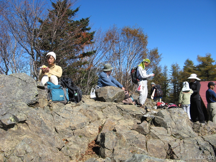 眺めがよいので避難小屋の隣りでゆっくりすることにした。写真を撮ってからオニギリを食べた。