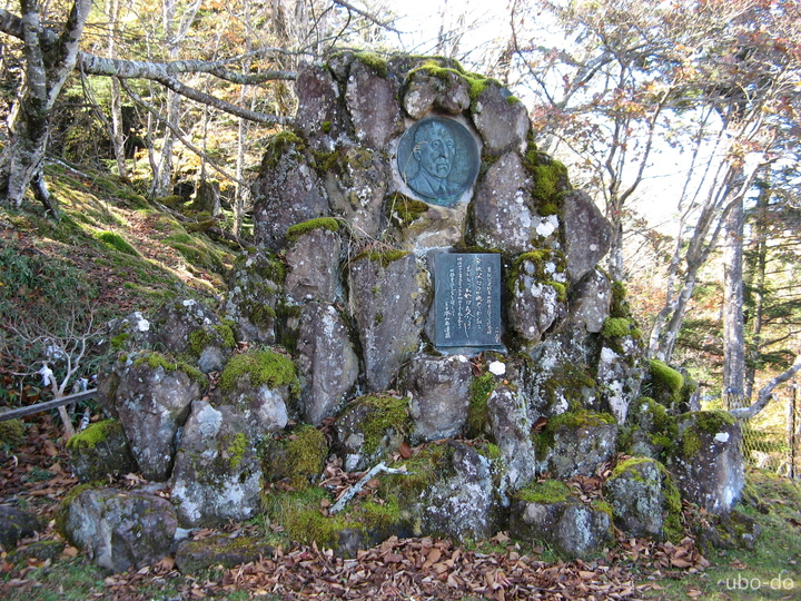 山荘手前に田部重治のレリーフがあった。