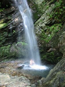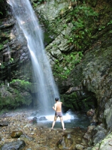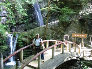 男滝には滝打ちをしている男性が!けっこうな高さから水が落ちてくるから、かなりの水圧だと思うんだが…。