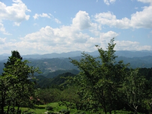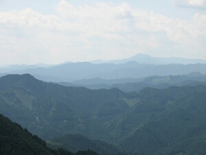 顔振峠の茶屋から見る眺めは最高。山が幾重にも連なって波のようだった。