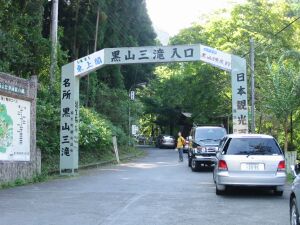 「黒山三滝」のゲートに到着。少し入った茶屋の隣に無料駐車場がある。帰りの運転がとても辛かった。