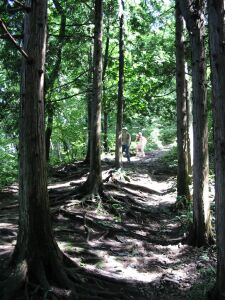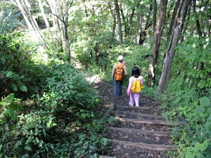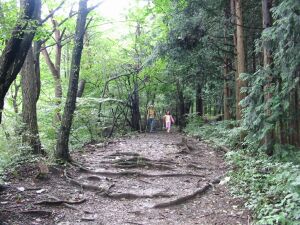それほど急な坂はなかったが、足元が湿っていて滑りやすかったので、登山用ステッキが重宝した。