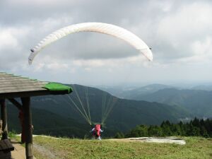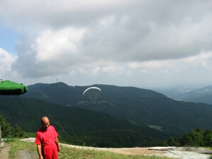 大野峠へ向う途中で、パラグライダーをしている人たちに遭遇。