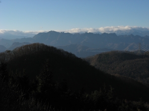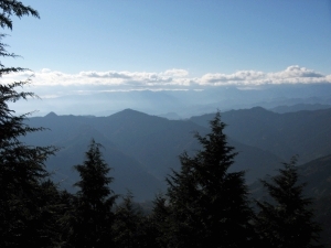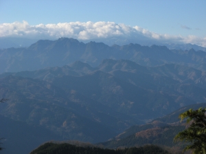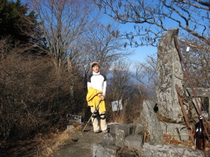 不動明王が祀られた山頂はひじょうに狭く、周囲の立木で展望は南側に限られていた。