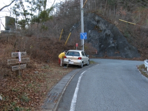 狭いところから山道に入ってしまったが、20mほど先に入りやすい登山口があった。