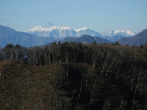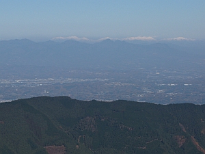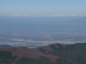 北西方面には冠雪した浅間山が大きい。その左、西側には真っ白な北アルプスも見えた。