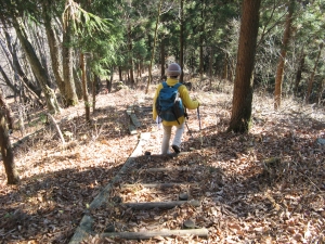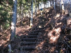 最初は丸太の階段が続く。