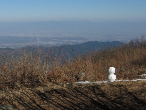 しばらくすると子供連れの男性が登ってきた。3人の子供たちは展望に目もくれずせっせと雪だるまを作っていた。