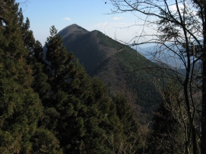 ときおり樹間から東御荷鉾山が見えた。