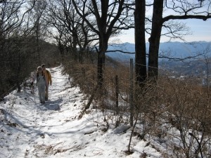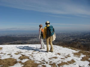途中で余計な道に入るなどして時間をロスしたが、山頂はもちろん林道や登山道からも素晴らしい展望を楽しむことができた。積雪が予想以上に残っていたが、アイゼンが必要になるほどではなく、雪を踏みしめて歩くのはかえって楽しかった。近くに秩父高原牧場があって人気のハイキング・コースと聞いていたが、この日会ったハイカーは数えるほどで、のんびりとハイクを楽しむことができた。近くて手軽で展望も良いので、また行きたい。