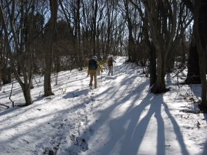 次は登谷山へ向かった。深いところは15cm以上積雪しており、靴の中が濡れ始めた。